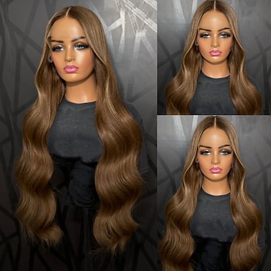 Cabelo Humano Fechamento 5x5 13x4 Lace Front Peruca Parte livre Cabelo Brasileiro Onda de Corpo Marrom Claro Peruca 150% 180% Densidade do Cabelo com o cabelo do bebê Riscas Naturais 100% Virgem Sem