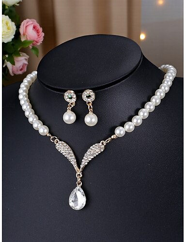 Conjuntos de joias de noiva 2 Zircão Imitação de Pérola Strass 1 Colar Brincos Mulheres Elegante à moda Simples Fofo Contas Formato de Folha Borboleta Irregular Conjunto de jóias Para Casamento Festa