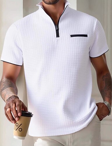 Homens Camisas Polo Waffle Polo com zíper Casual Feriado Quarter Zip Manga Curta Moda Básico Tecido Quarter Zip Verão Primavera Todas as Estações Fino Preto Branco Azul Marinho Laranja Camisas Polo