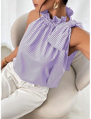 Mulheres Camisola Regata Imprimir Listrado Diário Casual Sem Manga Halter pescoço Tops regulares Diário Preto Azul Céu Roxo Verde Verão
