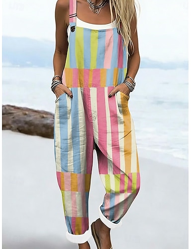 Mulheres Jardineiras Ativo Gráfico Sem Manga Sem Mangas Perna larga Bolsos Botões Férias Diário Ajuste Largo Preto Branco Azul Marinha Verão