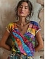 Mulheres Feminino Camisa casual Geométrica Floral Casual Camiseta Multi Color Imprimir Cintura com Faixa Cruzada Manga Curta Elegante Boêmia Férias Decote Canoa Verão Primavera