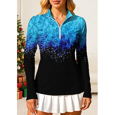 Mulheres Gradiente Mármore Arte abstrata Moletom Polo Tops Camisa Camisa Esportiva Manga Longa Imprimir Quarter Zip Pullover UPF50+ Resistente a UV Proteção UV Elástico Respirável Voleibal Tênis Golfe