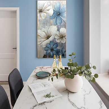 Pintura a óleo pintada à mão arte da parede azul flores douradas decoração decoração de casa pintura em tela para sala de estar