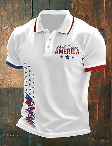 Homens Estrela veteranos Patriótico Camisas Polo Camisa de golfe Manga Curta Camisa Aberto para a Lateral Diário Praia Impressão 3D Branco Vinho Azul Real Verde Escuro Preto 3D Botão para baixo Roupa