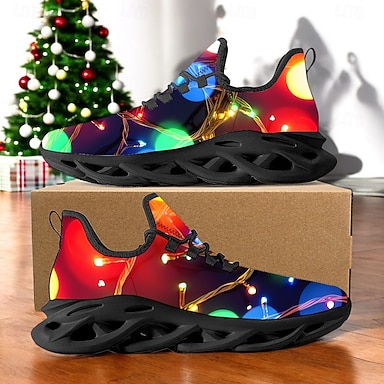 Tênis masculinos com estampa de luzes de LED festivas de Natal – design vibrante com brilho natalino e sola preta