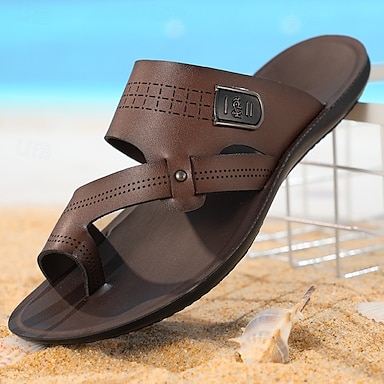 Homens Minimalista Casual Ao ar livre Ilha e Cruzeiro Pele PU Antiderrapante Fivela Preto Marron Verão Primavera Todas as Estações