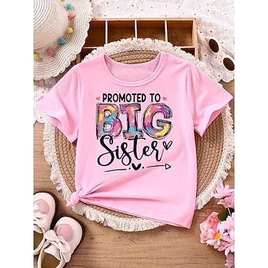 Para Meninas 3D Gráfico Letra Camisa Camiseta Manga Curta Impressão 3D Verão Primavera Esportes Moda Roupa de rua Infantil 4-12 anos Gola Redonda Casual Diário Ao ar livre Normal