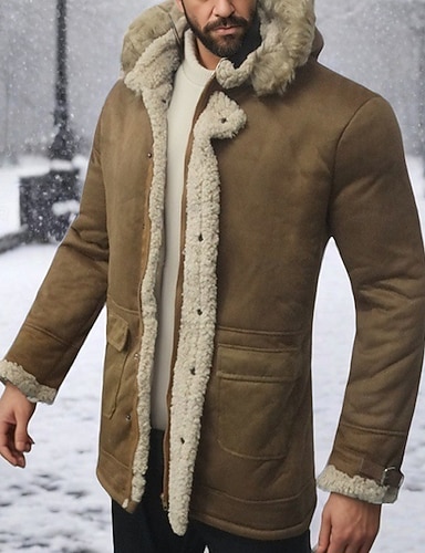 Homens Jaqueta de Inverno Casaco de pele falsa Férias Diário Térmico / Quente Tosão Outono Inverno Tecido Moda Roupa de rua Lapela Longo Preto Branco Amarelo Camelo Marron Casaco