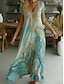 Mulheres Vestido Longo Vestido casual Vestido estampado Elegante Moda Moderno Ao ar livre Praia Férias Ajuste Largo Gráfico Manga Curta Decote V Azul Verão Primavera