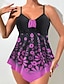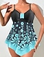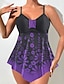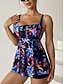 Tankini Feminino 2 Peças Maiô Com Arame Cheeky Controle de Barriga Cintura Alta Slim Costas Descobertas Férias Praia Estampado Floral Sem Alças Sem Mangas