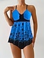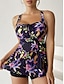 Mulheres Roupa de Banho Tankini 2 partes Saia roupa de banho Com Cordão Elegante Férias Floral Scoop pescoço Sem Manga Fatos de banho