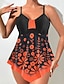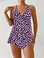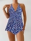 Mulheres Roupa de Banho Tankini 2 partes Cavado roupa de banho Com Cordão Férias Roupa de Praia Floral Gráfico Halter pescoço Sem Manga Fatos de banho