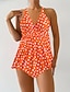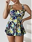 Mulheres Roupa de Banho 2 partes Calção roupa de banho Frente Única Férias Roupa de Praia Floral Gráfico Decote U Sem Manga Fatos de banho