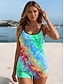 Mulheres Roupa de Banho Tankini 2 partes Calção roupa de banho Compressão abdominal Cintura Alta Delgado Frente Única Férias Roupa de Praia Floral Tropical Decote U Sem Manga Fatos de banho