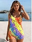 Maiô Feminino Biquíni 2 Peças Cheeky Slim Sem Costas Roupas de Praia para Férias Gráfico Geométrico Decote em V Sem Mangas