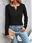 Mulheres Camisa casual camisa de botão Blusa Patchwork Botões Côr Sólida Tecido Diário à moda Clássico Manga Longa Aberto para a Lateral Tops regulares Feriado Roupa de Praia Roupas de férias Preto