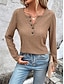 Mulheres Camiseta Malha Íntima T-shirt Botões Tecido Moda Clássico Casual Sem Manga Decote V Tops regulares Diário Para Noite Final de semana Marron Verão Primavera