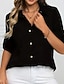 Mulheres Camiseta Camisas Polo Camisetas Tops de tricô waffle Gráfico Tecido Moda à moda Básico Manga Curta Colarinho de Camisa Tops regulares Casual Diário Para Noite Azul Preto Branco Amarelo
