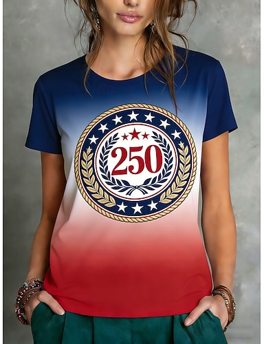 Dia da Independência Americana Mulheres Camiseta T-shirt Imprimir Gráfico à moda Clássico Casual Manga Curta Gola Redonda Decote Redondo Tops regulares Diário Esportes Para Noite Azul Vermelho Verão