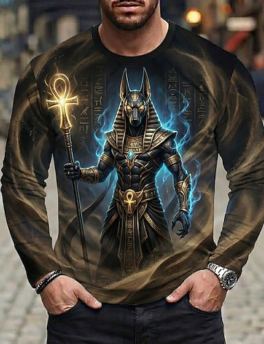 Homens 3D Camiseta Manga Longa Camiseta Impressão 3D Gola Redonda Camisa Moda Básico Casual Diário Rua Azul Preto 1 Preto 2 Verão Primavera Roupa S M L XL XXL XXXL