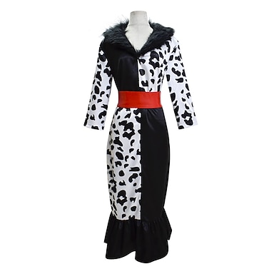 101 filhotes pintados Cruella De Vil Vestidos Traje Cosplay Baile de Máscara Férias for Mulheres Adulto Carnaval Baile de Máscaras