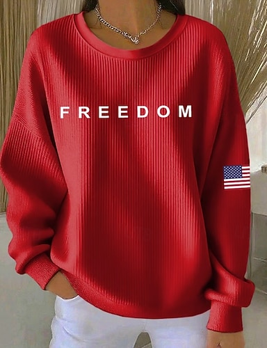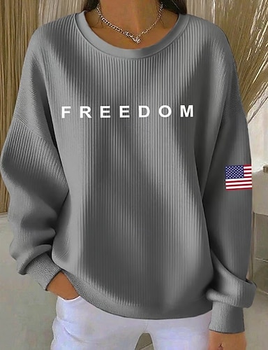 Dia da Independência Americana Mulheres Camiseta Imprimir Gráfico Letra Vintage à moda Clássico Manga Curta Decote Redondo Tops regulares Diário Azul Preto Branco Vermelho Verão Primavera