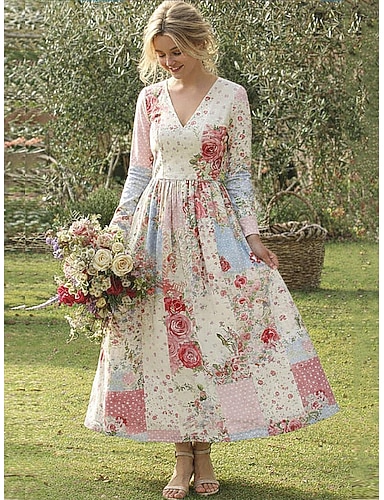 Mulheres Vestido Longo vestido plissado Festa Casual Boho Diário Encontro Para Noite Normal Floral Gráfico Manga Longa Decote V Rosa Claro Verão Primavera