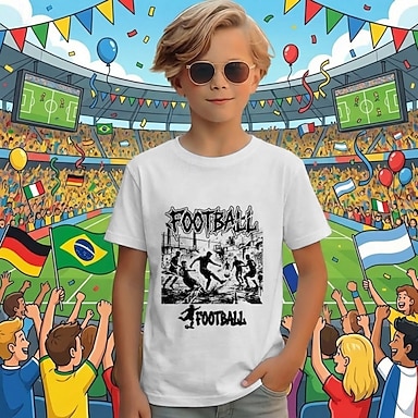 100% Algodão Infantil Para Meninos Branco Gráfico Jogador de futebol Camisa Blusa Gola Redonda Manga Curta Ao ar livre Dia a Dia Moda Roupa de rua Designer Estampado Verão