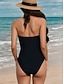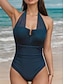 Maiô Feminino Uma Peça Afinador Ruched Sexy Cutout Monokini Controle de Barriga Cintura Alta Slim Costas Descobertas Moda Praia de Férias Cor Sólida Alça Halter Sem Mangas