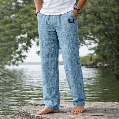 Homens Calças de linho Calça verão Calças de praia Cintura elástica Perna reta Tecido Conforto Leve Comprimento total Casual Diário Ao ar livre Férias Moda Azul Preto Micro-Elástica