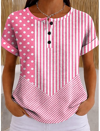 Mulheres Camiseta Gráfico Geométrica à moda Clássico Manga Curta Gola Redonda Tops regulares Casual Diário Amarelo Rosa Roxo Claro Verão Primavera