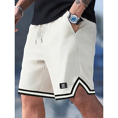 Homens Calções Waffle Calção Shorts casuais Bolsos Cintura elástica Minimalista Textura Conforto Respirável Acima do Joelho Casual Ao ar livre Praia Férias Moda Preto Branco Sem Elasticidade