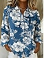 Mulheres Camisa Social camisa de botão Camisa casual camisa de praia Botões Imprimir Floral Elegante à moda Casual Manga Longa Colarinho de Camisa Tops regulares Diário Feriado Para Noite Azul