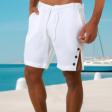 Homens Calção Shorts de linho Shorts de verão Shorts de praia Com Cordão Bolsos Botão Lateral Tecido Conforto Respirável Curto Casual Diário Feriado Moda Designer Preto Branco