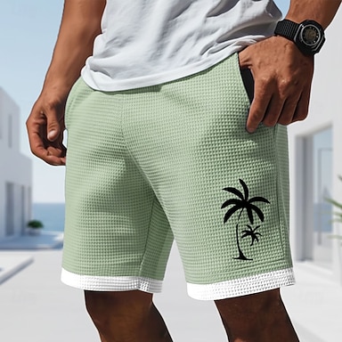 Homens Coqueiro Plantas Tropicais Bloqueio de cores Calções Waffle Shorts casuais Shorts texturizados Cintura Média Havaiana Diário Férias Cintura elástica com cordão Shorts com bolsos Designer Roupa