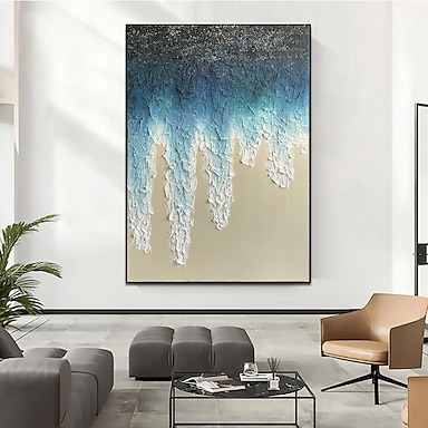 Pintura a óleo abstrata branca azul artesanal arte de parede pintada à mão pinturas modernas decoração de casa decoração moldura esticada pronta para pendurar