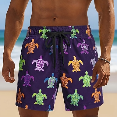Homens tartarugas Criaturas marinhas Calção Justo de Natação Shorts de Natação Bermuda de Surf Cintura Média Havaiana férias na praia Bolsos laterais Forro de malha Cintura elástica com cordão