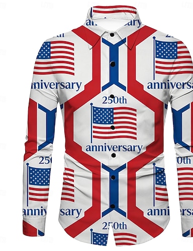 250º Aniversário EUA Retro Vintage Anos 70 Camisa Camisa Aloha Manga Comprida Hippie Geométrico Étnico Fantasia Homens Baile de Máscaras 4 de julho Festa Dia da Independência Adulto Camisa