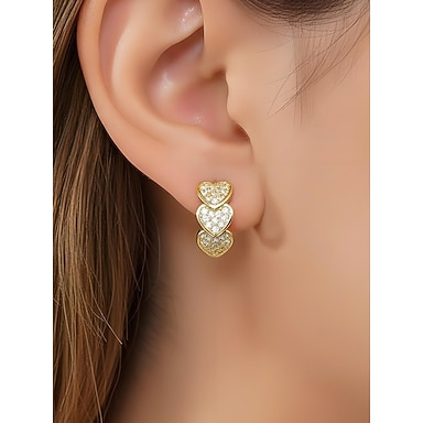 Brincos femininos em formato de coração com cristais, em liga banhada a ouro, diversas cores, perfeitos para o Dia dos Namorados, casamentos e uso diário.