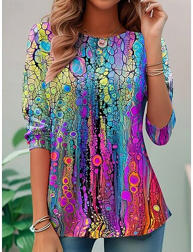Mulheres Camiseta Imprimir Gráfico Abstrato à moda Clássico Casual Manga Curta Gola Redonda Tops regulares Casual Diário Azul Roxo Laranja Verde Verão Primavera