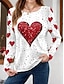 Dia dos Namorados Mulheres Camiseta Imprimir Coração Gráfico Moda à moda Clássico Manga Longa Gola Redonda Tops regulares Diário Final de semana Branco Verão Primavera