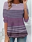 Mulheres Camiseta Imprimir Gráfico Geométrica Abstrato Moda à moda Clássico Manga Longa Gola Redonda Tops regulares Diário Final de semana Roxo Verão Primavera Outono