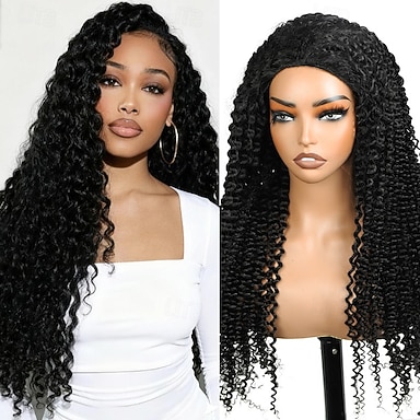 Peruca crespa cacheada de cabelo humano para mulheres negras, com pontas em espiral e cordão ajustável, densidade de 180%.