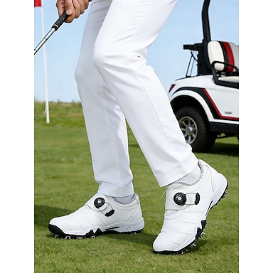 Sapatos de golfe masculinos, em couro sintético branco com fecho ajustável Boa, ajuste confortável, sola antiderrapante, perfeitos para golfe, esportes ao ar livre e um estilo de vida ativo.