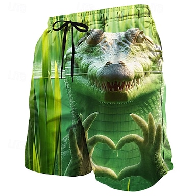 Homens Animal Crocodilo Forma de Coração Calção Justo de Natação Shorts de Natação Bermuda de Surf Cintura Média Engraçado Ao ar livre Férias Dia a Dia Bolsos laterais Forro de malha Cintura elástica