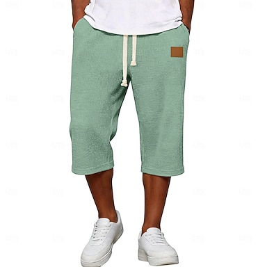Homens Calções Waffle Calças Capri Calção Shorts casuais Bolsos Cintura elástica Tecido Conforto Respirável Comprimento da panturrilha Casual Ao ar livre Praia Férias Moda Preto Branco Sem