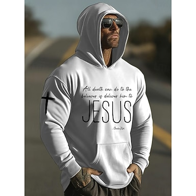 Homens Cruz Jesus Moletom Moletom com capuz Moletom casual Moda Diário Férias Casual Vintage retrô Com Capuz Férias Streetwear Festival Azul Preto Branco Vermelho Verde Estampado Outono Inverno