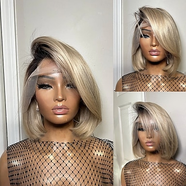 Cabelo Humano Fechamento 5x5 13x4 Lace Front Peruca Bob curto Cabelo Brasileiro Liso Loiro Peruca 150% 180% Densidade do Cabelo Cabelo Ombre Riscas Naturais 100% Virgem Sem cola Pré-depenado Para