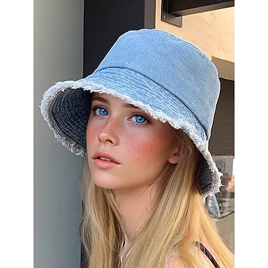 chapéu de balde jeans casual feminino – borda desfiada, macio e confortável, chapéu de verão estiloso para uso diário, praia e atividades ao ar livre